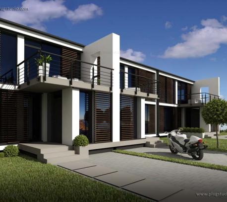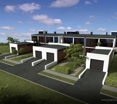 Budynek stanowi zewnętrzny moduł w zabudowie szeregowej serii PS-AL, z garażem. Prosta i nowoczesna bryła budynku idealnie wpisze się w każde otoczenie.