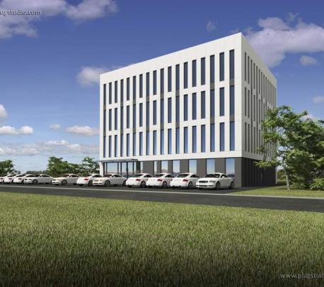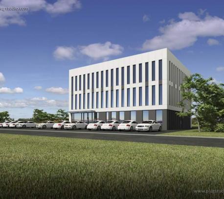Obiekt usługowy o konstrukcji słupowo-płytowej ocieplony 30 cm izolacji.