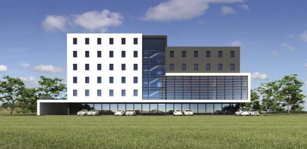 Projekt nowoczesnego hotelu serii DH. Wewnątrz przestrzeń, którą można podzielić na wiele sposobów. W zależności od potrzeb klienta można wydzielić pomieszczenia o różnej wielkości. Budynek posiada opcję garażu podziemnego. Dostępne inne wersje, różniące się elewacją oraz wysokością i szarokością budynków.