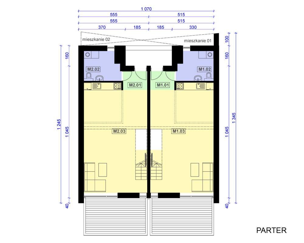 Wydłużona wersja PS-MN-40-20-V12. Budynek jednorodzinny z dwoma lokalami mieszkalnymi. Zaprojektowany dla rodzin 2+1 lub 2+2. Nowoczesna bryła i prosta forma nadaje niepowtarzalny charakter oraz doskonale wpisuje się w otoczenie. Wewnąrz funkcjonalny i wygodny układ pomieszczeń. Budynek może stanowić osobny moduł w zabudowie szeregowej.